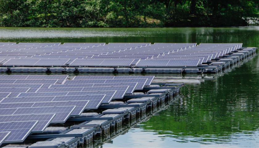 De panelen komen laag op het water te liggen (ongeveer tot 1 meter hoog), waardoor ze zo min mogelijk opvallen. Waar nodig kijken we ook naar extra beplanting langs de rand, zodat het geheel goed in de omgeving past.